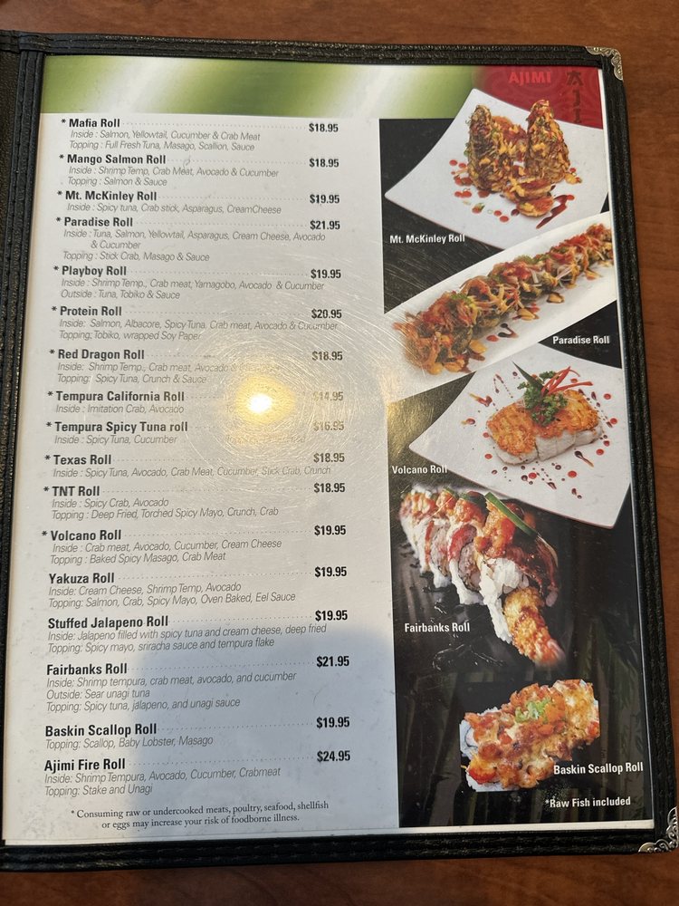 Welcome to Ajimi, a hidden gem in Fairbanks, AK, where Asian fusion meets authentic Japanese cuisine. Located at 69 College Road, Ajimi is perfect for casual dining with family or friends, featuring a lively atmosphere complemented by friendly staff. The menu is a delightful blend of flavors, with highlights like the fresh Chirashi bowl packed with premium seafood and the rich miso soup, praised as the best in town.